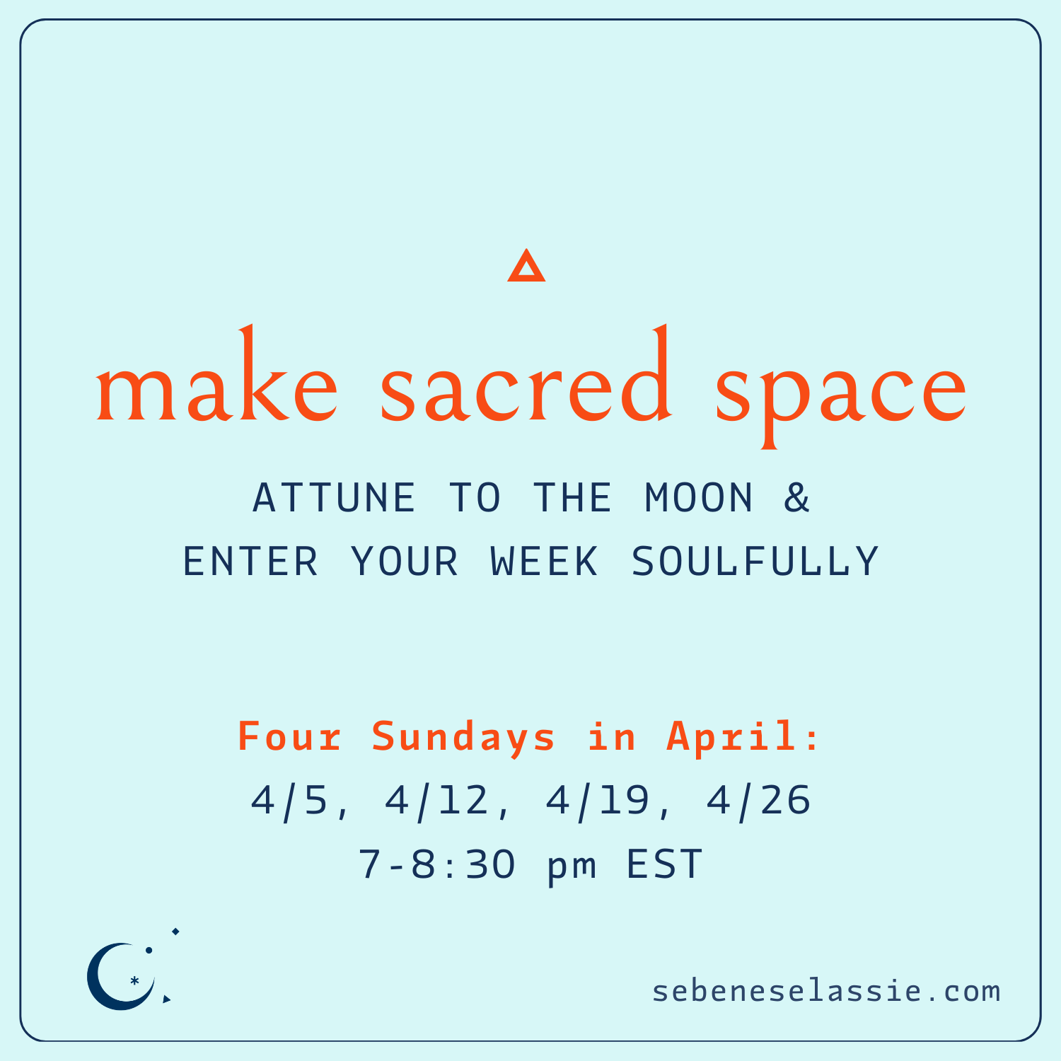 make sacred space is a Sunday gathering where we attune to the Moon through guided meditation, journaling prompts, and open space — all for a soulful start to the week.